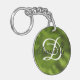 Create your own monogrammed faux dark green foil and photo keychain favours.