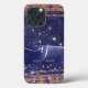 "Girly Navy Rose Gold Glitter Stars Foliage Script Name and Monogram iPhone 13 Case." Elegant glitz and glam phone case that features, rose gold bokeh glitter sparkle brush stroke paired with layers of blush pink and white diamond dust and jewels. A leaf foliage greenery pattern in blush pink is topped off by a watercolor splatter and brush stroke design that has been graphically designed into gold glitter. Graphically designed by internationally licensed artist, Audrey Jeanne Roberts, copyright.