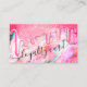 This girly and glamourous customer loyalty business card is perfect for a stylish and trendy professional businesswoman. It depicts faux printed sparkly thick glitter drips on top of pearl nacre, opal, holographic, and iridescent background with a colour scheme that includes neon coral pink, teal green, magenta purple, white, blue, and coral orange. It also features sweet and delicate handwritten script typography with the word, "loyalty card," to match this design's cute and modern vibe. It's pretty, glamourous, chic, and trendy.