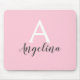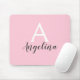 Personalized monogram girly pale blush pink mouse pad with white and grey writing. This pretty mouse pad can be easily personalized with your own custom first name and monogram initial. You can even change the text colour and font style using the customize option.