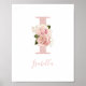 Girly Pale Rose Gold Glitter Floral Monogram I Poster