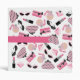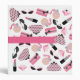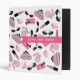 A binder featuring a design consisting of illustrations of cat eye sunglasses, pink diamonds, purses, and perfume bottles. Personalize the front with your name or other text.