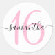 Girly Pink and White Polka Dot Personalized 16 Classic Round Sticker