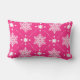 Festive pink and white snowflakes christmas pattern on lumbar pillow.