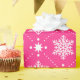 Festive pink and white snowflakes christmas pattern on wrapping paper.