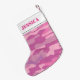 Personalized Christmas stocking with custom name monogram. Girly pink army camouflage design or customixable colour. Cute monogrammed xmas decorations for the Holidays. Change the quantity to get the cheapest price per sock. Vinatage military typography letters for name or initials. Cool x-mas stocking for women and girls. Hunter pink camo design.