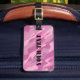 Étiquette rose Girly personnalisée de bagage de voyage de camouflage d'armée. Conception de chasseur avec le texte fait sur commande ou les lettres intitial nommées décorées d'un monogramme. Idée fraîche de cadeau pour le soldat ou l'épouse de chasseurs. Accessoire de couleur de Camo pour des sacs et des valises.