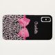 Girly Pink Black Leopard Print Cute Bow and Name Case-Mate iPhone Case