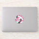 This custom volleyball sticker features the stylized image of a volleyball that has a floral kaleidoscopic pattern blended with its pink and black panels - her name jersey number are customizable - by katz_d_zynes