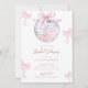 Girly Pink Bows Shiny Disco Ball Bridal Shower Invitation