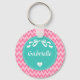 Personalize by adding your name to this girly two tone pink zigzag chevron pattern keychain with a cute stitched mint green circle stripe decorated with a stylish white bow and a heart with a chic sailors anchor inside. Perfect design for the teen girl.
