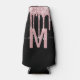 Keep your drinks cool in style with this custom glitter and glam can cooler. This girly design features a border at the top of faux pink dripping glitter with sparkles. In the centre is your monogram initial in pink with your name in an elegant hand lettered pale pink script on a background of black. Designed just for you by Extreme Tees!