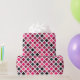 This wrapping paper features a colourful geometric pattern in black, grey, and pink shades with a faux glitter texture. Great for Valentine's Day or girl's birthday gift wrapping.