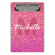 Girly Pink Faux Glitter Sparkle Monogram Name Mini Clipboard