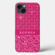 Girly Pink Glitter and Diamonds Personalized iPhone 13 case - Add a brilliant pop of pink colour to your iPhone with our personalized iPhone case.