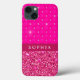 Girly Pink Glitter and Diamonds Personalized iPhone 13 case - Add a brilliant pop of pink colour to your iPhone with our personalized iPhone case.