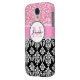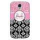 Girly, Pink, Glitter Black Damask Personalized Case-Mate Samsung Galaxy Case