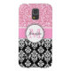 Girly, Pink, Glitter Black Damask Personalized Case-Mate Samsung Galaxy Case