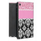 Girly, Pink, Glitter Black Damask Personalized iPad Mini Case