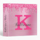 Girly Pink Glitter Drips Chic Glam Monogram Name Binder
