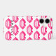 Girly pink glossy pixel lips pattern personalized iPhone 11 Case. Custom phone covers for him or her. Cool modern typography design with colourful print. Classy new case with stylish lettering. Unique Christmas or Birthday gift idea for men, women and kids. Apple smartphone accessories, version Eleven. Add your own name, monogram or quote. Also available for older Apple models like X, 8, 7 and Samsung Galaxy smartphones.
