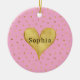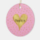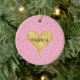 Girly Pink Gold Dots Heart Christmas Ceramic Ornament