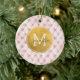 Girly Pink Gold Watercolor Confetti Monogram Ceramic Ornament