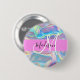 Girly pink, peach and aqua holographic iridescent monogram name and initial button. Your custom name and monogram are written in an elegant hand lettered script with a pink background. A perfect birthday or Christmas gift!