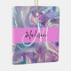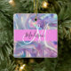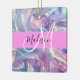 Girly pink, purple and aqua holographic iridescent monogram name and initial ceramic ornament. Your custom name and monogram are written in an elegant hand lettered script with a pink background. A perfect birthday or Christmas gift!
