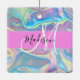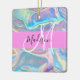 Girly Pink Holographic Iridescent Monogram Name Ceramic Ornament