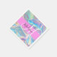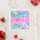 Girly peach, purple and aqua holographic iridescent monogram name and initial napkins. Your custom name and monogram are written in an elegant hand lettered script with a pink background. A perfect birthday or Christmas gift!
