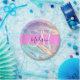 Girly Pink Holographic Iridescent Monogram Name Paper Plate