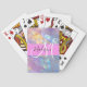 Girly pink, peach and aqua holographic iridescent monogram name and initial playing cards. Your custom name and monogram are written in an elegant hand lettered script with a pink background. A perfect birthday or Christmas gift!