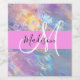 Girly pink, peach and aqua holographic iridescent monogram name and initial wine bottle label. Your custom name and monogram are written in an elegant hand lettered script with a pink background. A perfect birthday or Christmas gift!