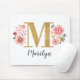 A beautiful, feminine monogrammed pink floral mouse pad, featuring pink flowers and a faux gold monogram letter M. Personalize the mouse pad by adding your name underneath the monogram. Makes a fun gift for a friend or for a bridesmaid gift. Designed for you by Blackberry Boulevard.