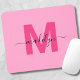 Girly Pink Monogram Script Name Mouse Pad