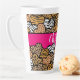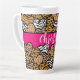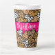Girly Pink Playful Animal Print Hearts Name Latte Mug