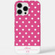 Add a touch of playful charm to your phone with this chic iPhone 16 Pro Max case featuring a pink and white polka dot pattern. Designed for those who love a fun and feminine style, this case is also customizable to make it uniquely yours. Customize it with your first name in a beautiful script, and add your initials in a stylish monogram for an extra dose of sophistication. Also makes a great personalized gift for birthdays, Christmas, and all occasions.