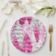 Girly Pink Silver Glam Christmas Trees Stripes Paper Plate