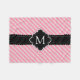 Girly Pink Stripes Pattern Black Custom Monogram Fleece Blanket
