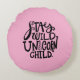 Girly Pink Wild Unicorn Round Pillow
