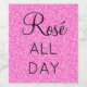 Stylish, trendy, girly "Rosé all day" wine label with a hot pink glitter sparkle background and elegant black writing.