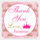 Girly and pretty pink and gold glitter princess crowns sparkly "Thank You" square sticker. This glam sticker also features a hot pink princess crown/ tiara, and elegant hot pink writing. You can easily add the name of your choice and change the colour and font using the customize option!