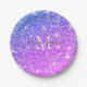 Girly Purple and Pink Glitter Monogram Name Paper Plate