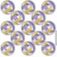 This set of 13 team colours volleyball stickers (each approximately 3 inches) features volleyballs with purple, gold and white panels (the purple and gold panels are blended with an artsy, girly floral pattern) - customize each sticker with a player's name & jersey number plus school or club name and mascot name - economically priced at a little more than $1 per 3" sticker - by katz_d_zynes