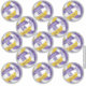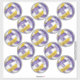 This set of 13 team colours volleyball stickers (each approximately 3 inches) features volleyballs with purple, gold and white panels (the purple and gold panels are blended with an artsy, girly floral pattern) - customize each sticker with a player's name & jersey number plus school or club name and mascot name - economically priced at a little more than $1 per 3" sticker - by katz_d_zynes