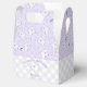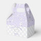 This is an adorable, girly purple & green Halloween 1st Birthday Favour Box. The background features a cute hand-drawn pattern of ghosts, bats, stars and moons on a pastel purple background. The front and back feature a cute ghost on a purple & green gingham pattern personalized with name and date.