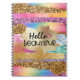 Girly rainbow gold glitter hello beautiful heart notebook