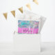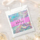 Girly rainbow holographic iridescent monogram name and initial favour bags. Your custom name and monogram are written in an elegant hand lettered script with a pink background. A perfect birthday or Christmas gift!