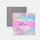 Girly rainbow holographic iridescent monogram name and initial magnet. Your custom name and monogram are written in an elegant hand lettered script with a pink background. A perfect birthday or Christmas gift!